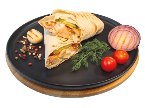 Шаурма в тортилье с острым соусом и перцем Халапеньо, 270гр. Можно выбрать сборку в лаваше.