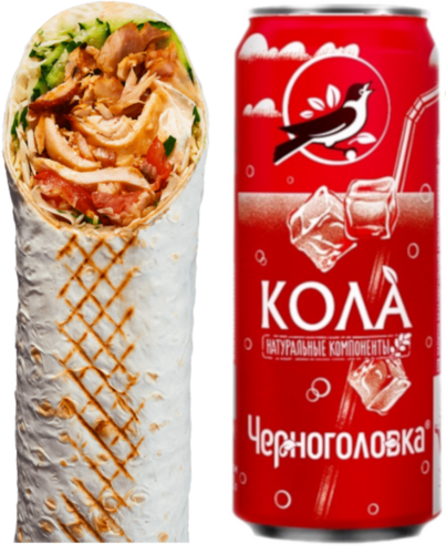 Состав: лаваш, филе куриной грудки, соус фирменный, помидоры, огурцы свежие.